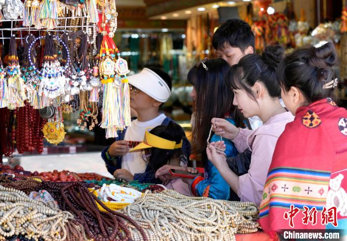 圖為游客在八廓街選購(gòu)旅游紀(jì)念品。中新社記者 李林 攝