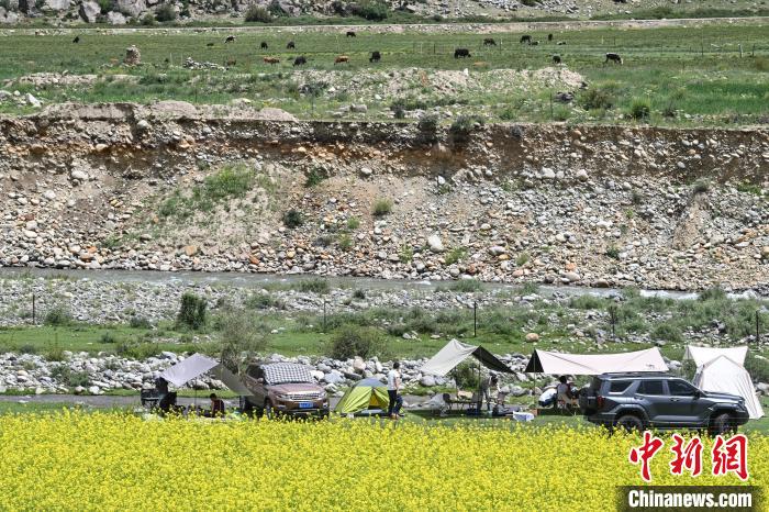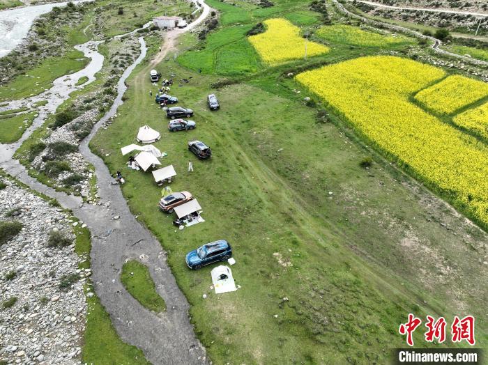 7月5日,西藏拉薩市風(fēng)和日麗,宜人周末里,市民紛紛前往近郊“過林卡”。在堆龍德慶區(qū)古榮鎮(zhèn)楚布溝,帳篷林立,歡聲笑語不斷。人們圍坐野餐,享受美食,伴著高原美景談天歌唱,孩童嬉戲奔跑,在自然中放松身心,延續(xù)傳統(tǒng)休閑樂趣 。圖為市民在楚布溝里“過林卡”。(無人機照片)中新社記者 貢嘎來松 攝