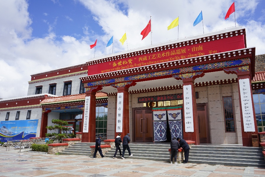 繪畫、雕塑、唐卡、金屬工藝……每一件展品都凝聚著古人的智慧與心血,展現(xiàn)了他們高超的技藝水平和獨(dú)特的藝術(shù)創(chuàng)造力。在“雅礱珍寶——傳統(tǒng)藝術(shù)展”展廳,觀眾可以欣賞到色彩斑斕的唐卡藝術(shù),感受其細(xì)膩的筆觸,觀賞精美的金屬工藝品,驚嘆于藝人精湛的鍛造和雕刻。這些作品不僅是山南的珍貴遺產(chǎn),也是中華民族藝術(shù)寶庫中的璀璨明珠。