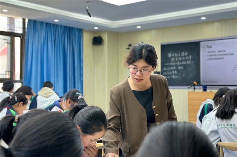 在拉薩北京實驗中學,北京援藏教師馬瀟雅上語文“雙師”課《中華同源》。拉薩北京實驗中學供圖