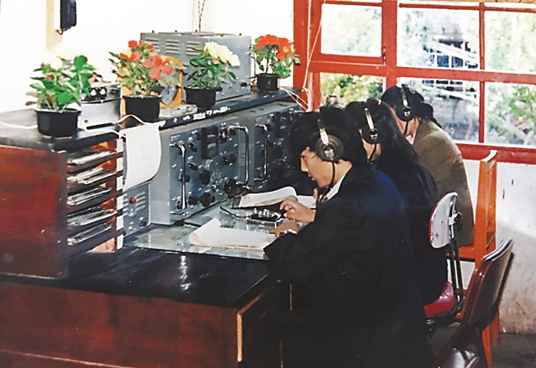 20世紀(jì)70-80年代業(yè)務(wù)人員通過莫爾斯電臺(tái)傳輸氣象資料。昌都市氣象局供圖