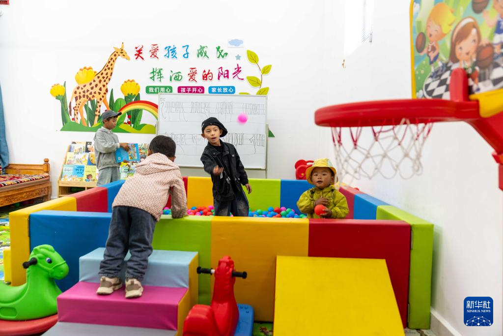 7月17日,小朋友在三有村幸福驛站托幼室內玩耍。新華社記者 旦增尼瑪曲珠 攝