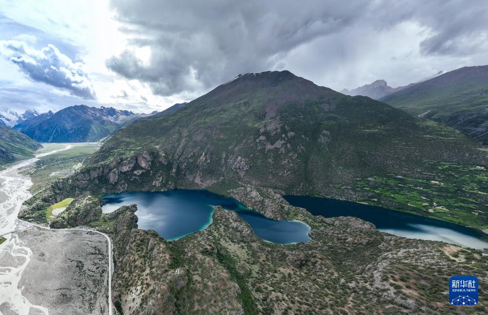 空中俯瞰“三色湖”,從左到右分別為黃湖、黑湖和白湖(7月20日攝,無人機(jī)照片)。新華社記者 晉美多吉 攝