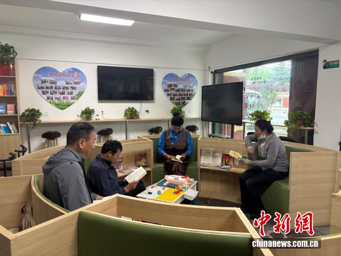 7月25日,拉薩市城關(guān)區(qū)魯固社區(qū)黨群服務(wù)V站內(nèi),當(dāng)?shù)鼐用裨陂喿x區(qū)看書。 中新網(wǎng)記者 張東方 攝