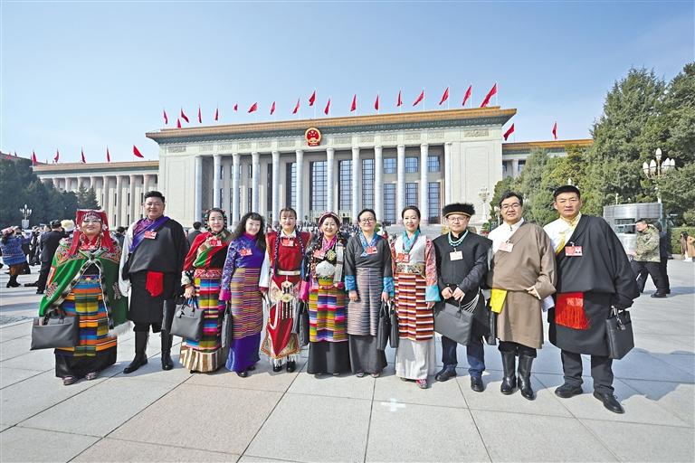 圖為十四屆全國人大三次會(huì)議期間,與會(huì)西藏的全國人大代表在人民大會(huì)堂前合影留念(2025年3月攝)。