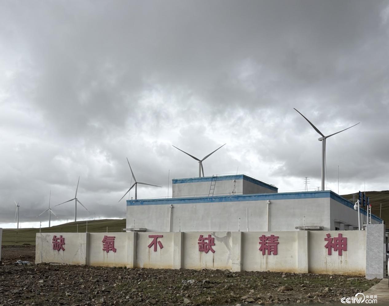 在哲古草原,巨大的風(fēng)機(jī)葉片緩緩轉(zhuǎn)動,劃破長空。這里是三峽措美哲古風(fēng)電場——全球海拔最高的在運行風(fēng)電場,墻上“缺氧不缺精神”的標(biāo)語,正是技術(shù)突破與綠色發(fā)展的信念的最好寫照。