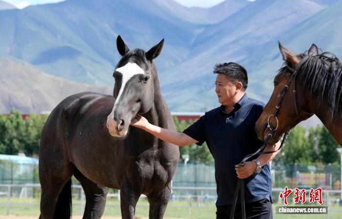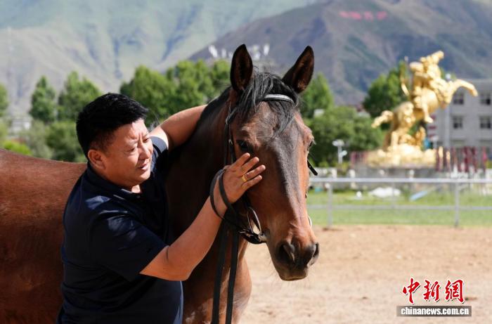 圖為西藏拉薩市北郊賽馬場(chǎng)上,羅輝和馬兒交流感情。李林 攝