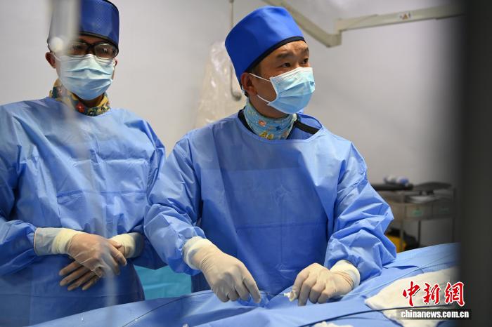 圖為張旭在做心臟介入手術。西藏軍區(qū)供圖