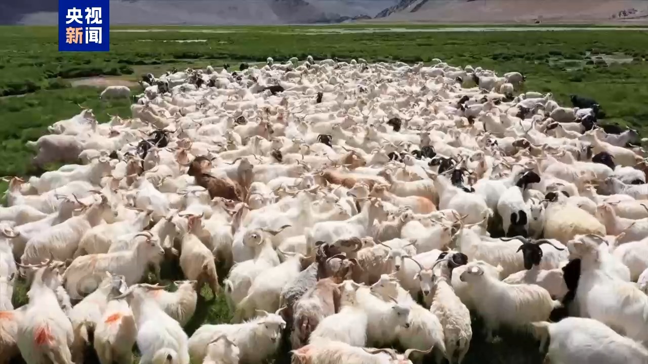 西藏阿里地區(qū)日土縣日土村黨支部書記 嘎瑪多吉:我們合作社那邊羊一千五百多只,羊絨一千多斤,今年比去年高一點(diǎn)。