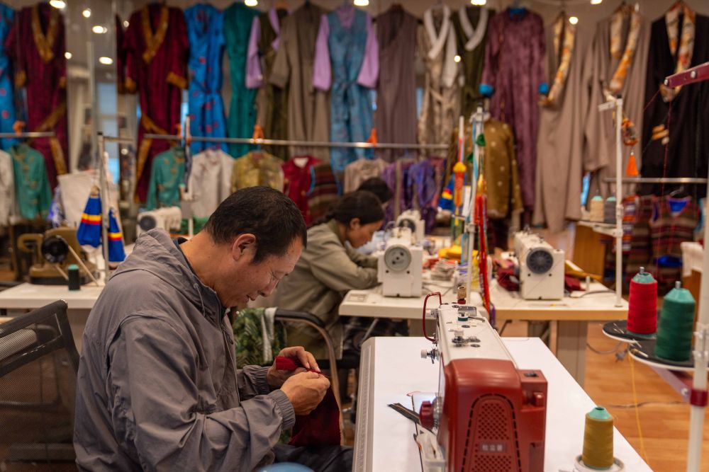 8月6日,服裝師在制作拉薩服飾。拉薩服飾入選西藏自治區(qū)級非物質文化遺產代表性項目名錄。