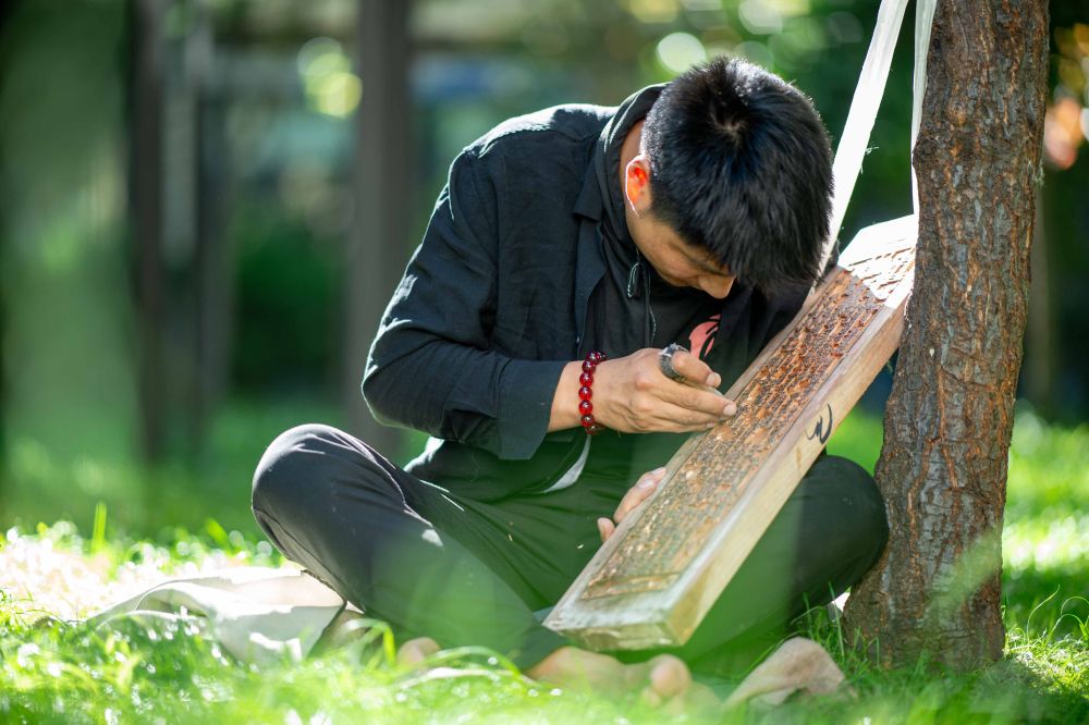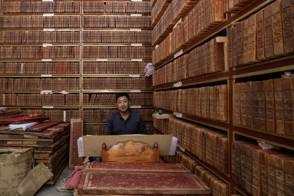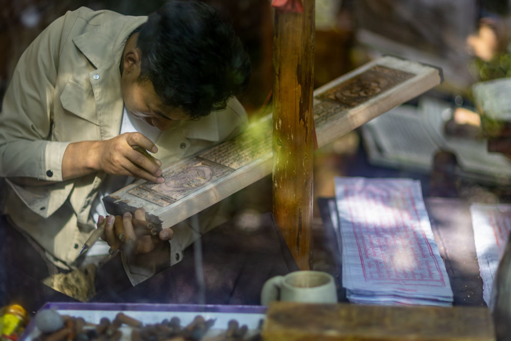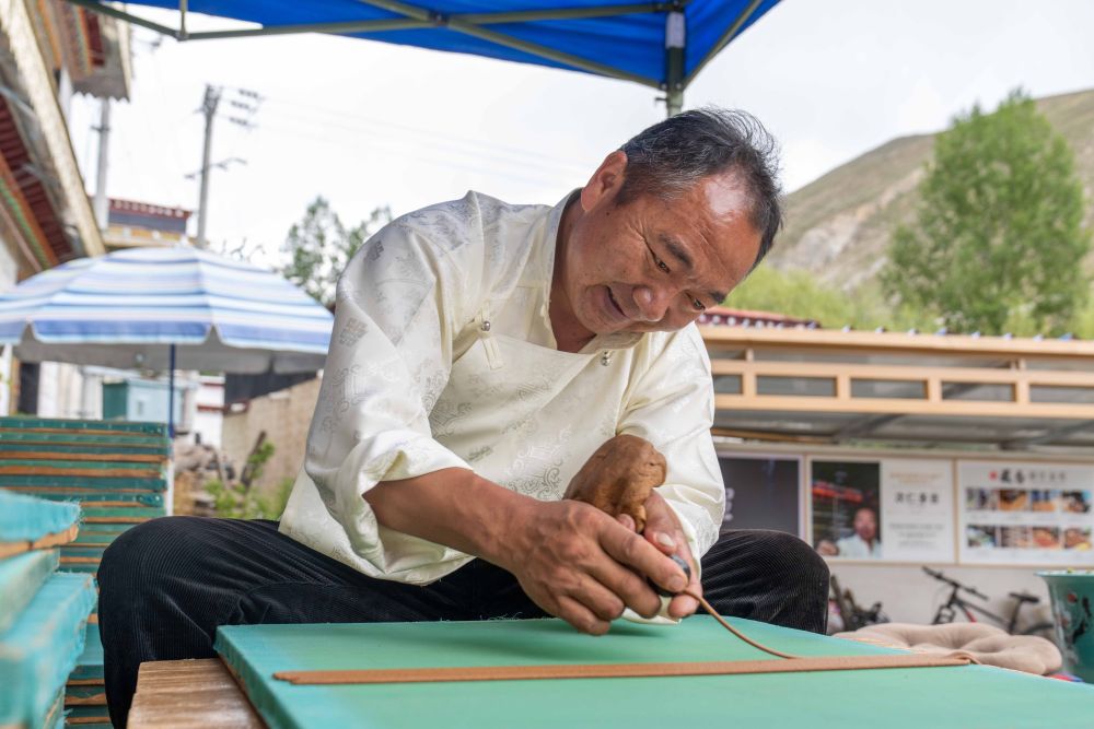 8月6日,一名雕刻師在工作中。西藏雪巴康雕版印刷制作技藝入選西藏自治區(qū)級非物質文化遺產代表性項目名錄。