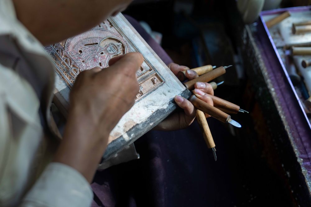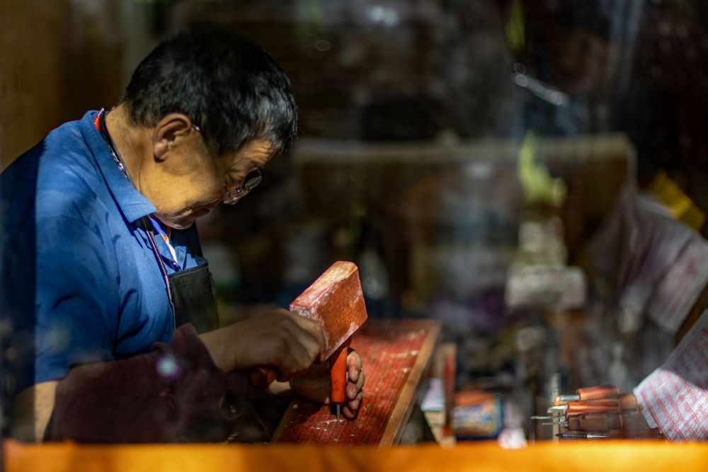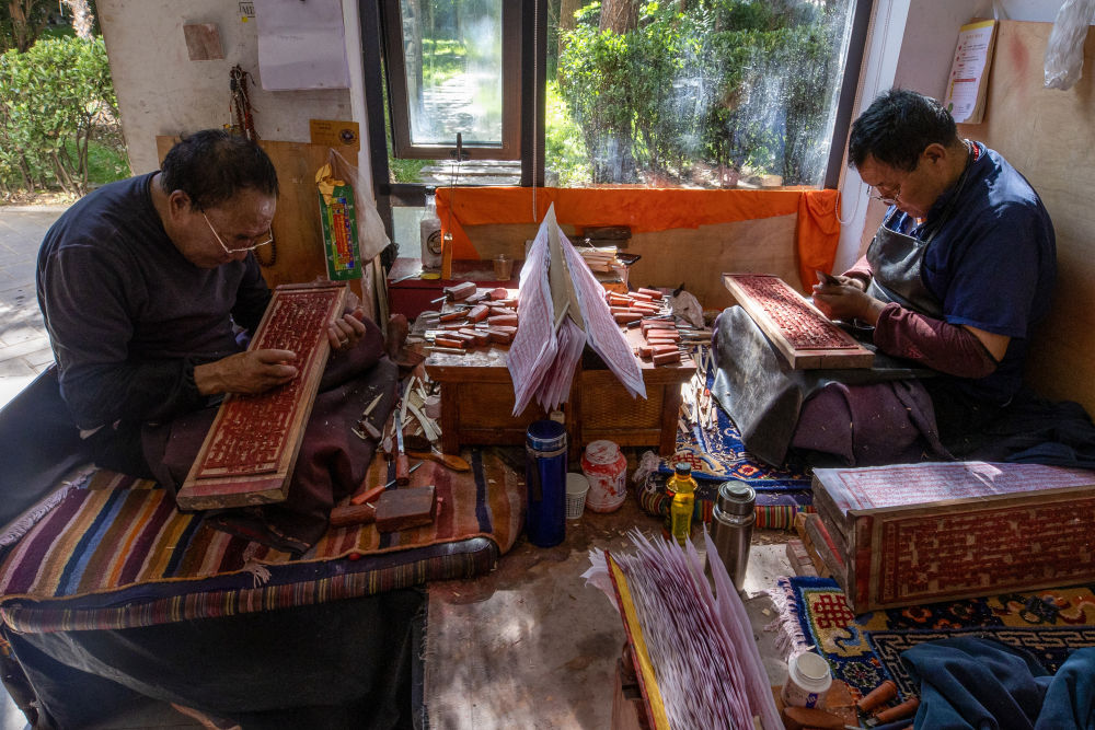 8月6日,一名雕刻師在雕刻中。西藏雪巴康雕版印刷制作技藝入選西藏自治區(qū)級非物質文化遺產代表性項目名錄。