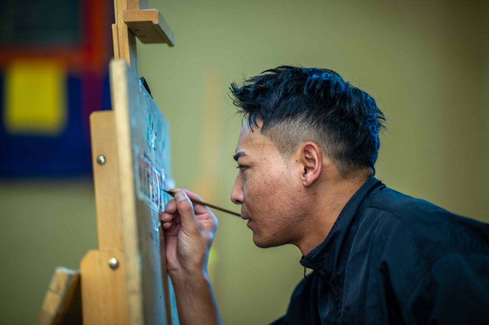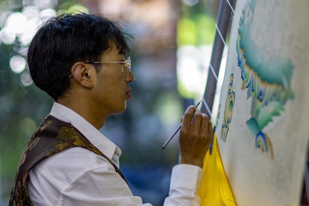 8月6日,一名畫師在繪制唐卡。藏族唐卡(齊吾崗派)入選國家級非物質文化遺產代表性項目名錄。