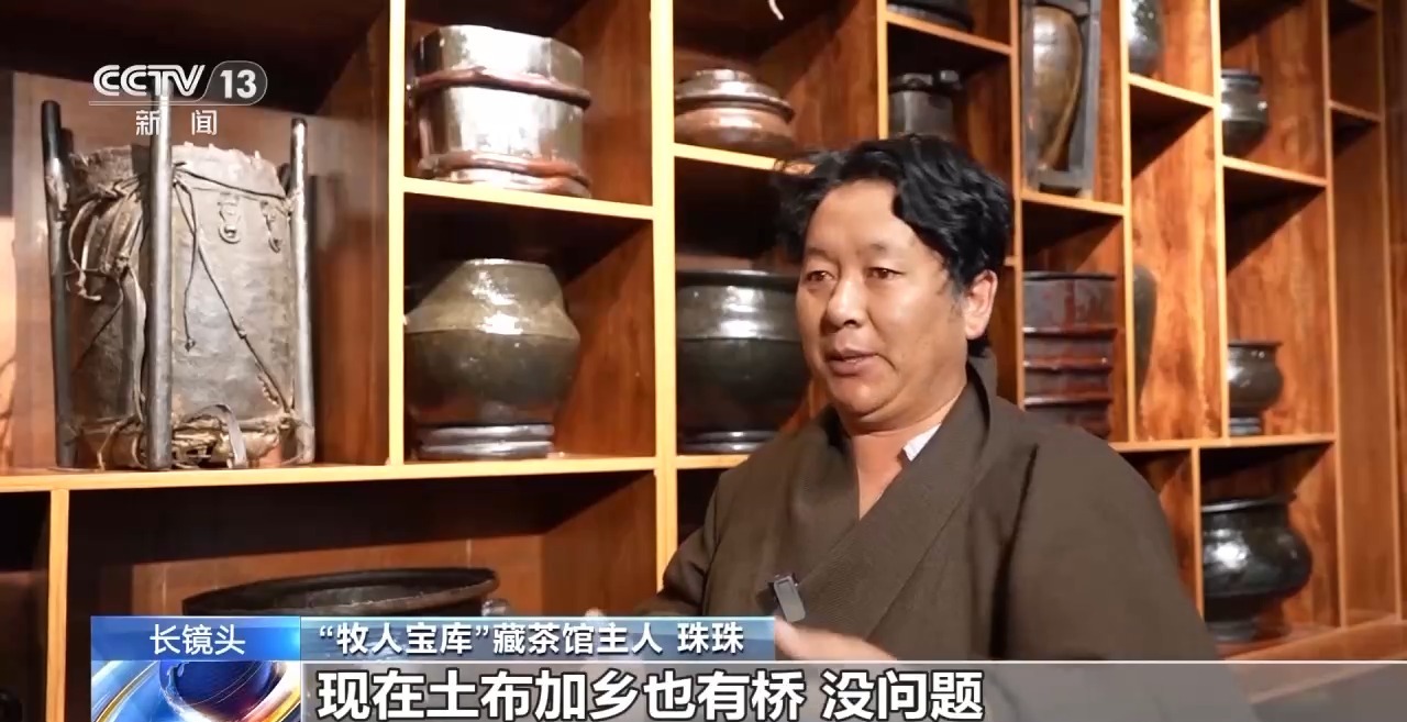 “牧人寶庫”藏茶館主人 珠珠:現(xiàn)在在黨的恩情下,所有事情都變得便捷。以前沒水的地方有了水、沒電的地方通了電、沒路的地方有了路,我有信心會(huì)變得越來越好。