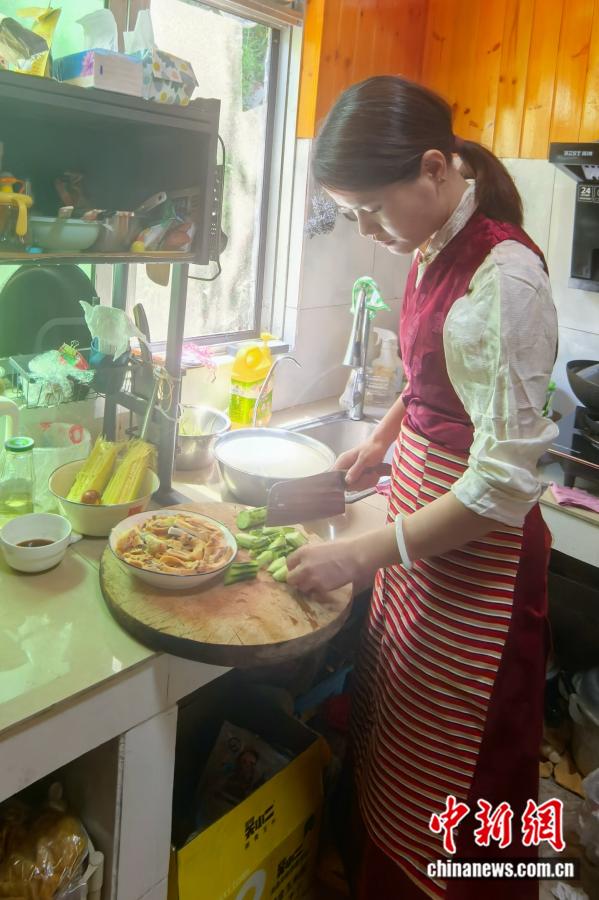 這種交融,也悄然浸潤(rùn)著兩個(gè)女兒的成長(zhǎng)。家里的餐桌永遠(yuǎn)擺著酥油茶和豆?jié){,藏裝與漢服常一起晾在陽臺(tái)。藏歷新年,丈夫教女兒插青稞穗;春節(jié),她帶女兒貼春聯(lián)。幼兒園讓畫“最喜歡的場(chǎng)景”時(shí),大女兒畫了一群不同民族的孩子圍著石榴樹拉手笑:“這是墨脫,我們都是一家人,像石榴籽一樣!”