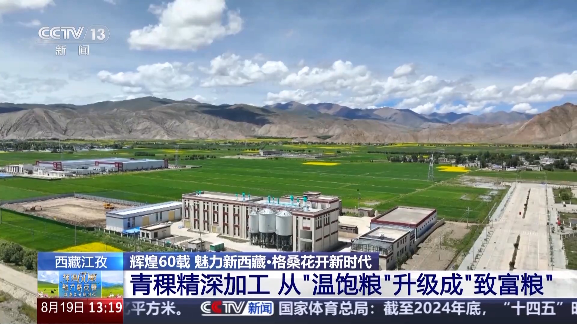總臺記者 于晨:我現(xiàn)在是在江孜縣的一家專注于青稞產(chǎn)品研發(fā)的科技公司,去年9月,全國首條青稞谷物專用生產(chǎn)線在這里落地,填補(bǔ)了行業(yè)的空白,這讓青稞的得粉率由原來的60%以下提升至了70%以上。