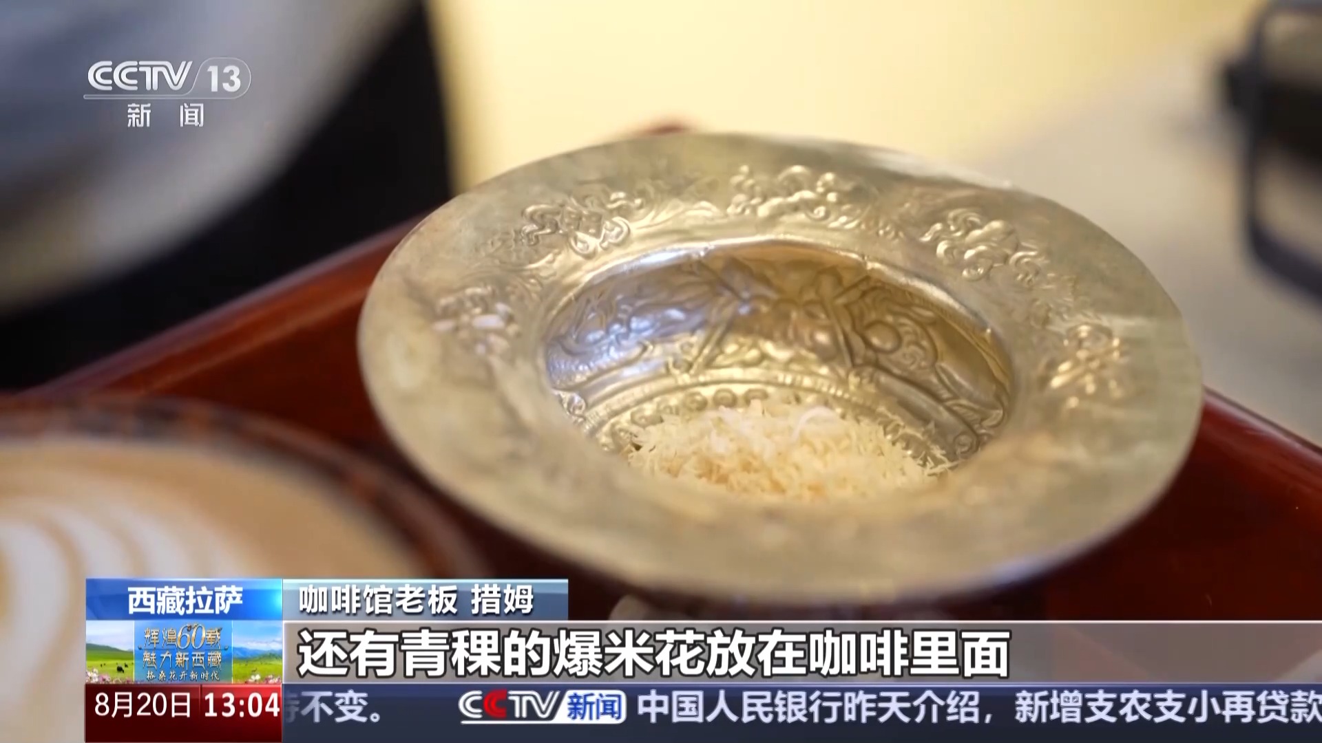 咖啡館老板 措姆:這款是我們店里面賣得最火爆的一款原創(chuàng)產(chǎn)品——拉薩拿鐵,我們準(zhǔn)備了牦牛奶的奶渣、酥油、青稞的爆米花放在咖啡里,讓客人體驗到西藏本地食材和咖啡融合的感覺。