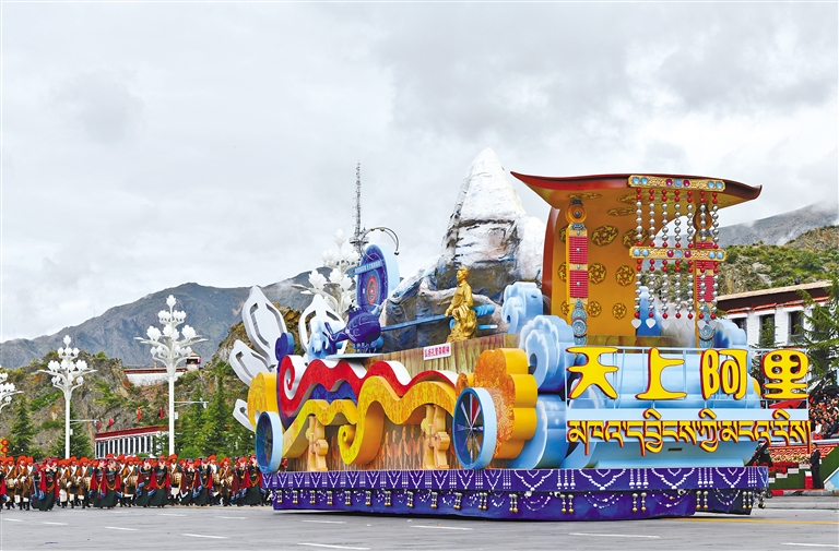 “天上阿里”彩車。 本網(wǎng)記者 旦增蘭澤 攝