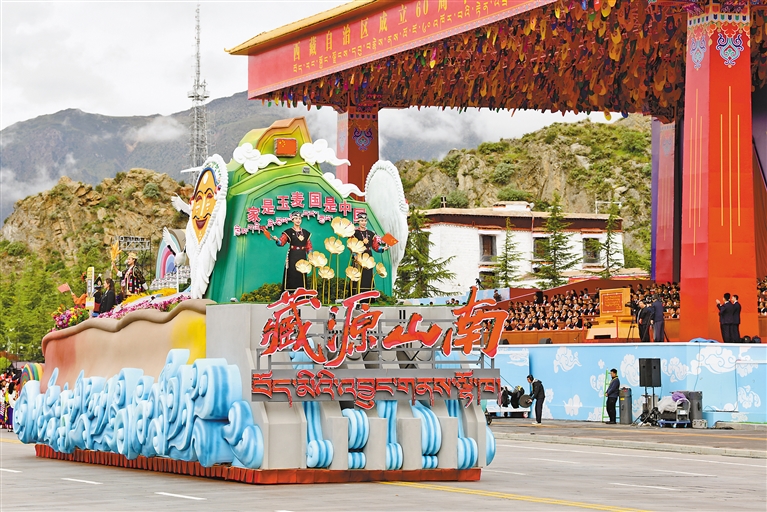 “藏源山南”彩車。 本網(wǎng)記者 唐斌 攝