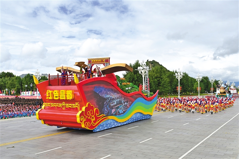 “紅色昌都”彩車。新華社記者 翟健嵐 攝