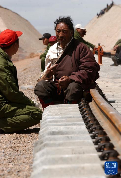 彼時,青藏鐵路的建設(shè)工地也成了附近居民最大的關(guān)注點。老鄉(xiāng)們來到工地東瞅瞅、西瞧瞧,好奇地摸摸鐵軌,又或者拉上工人們問問這、問問那——盡管很多時候,由于語言不通,他們并不能夠了解對方在說什么。但在家鄉(xiāng)人的臉上,我看到了對未來變化的憧憬,以及對鐵路建成越來越迫切的渴望。
