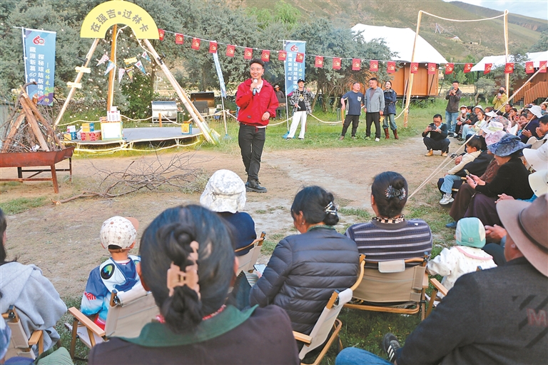 傍晚時分,強吉村篝火晚會開啟。村民身著盛裝,攜手跳起鍋莊,網(wǎng)絡(luò)達人紛紛舉起相機加入行列。歌聲、笑聲、鼓聲融為一體,久久回蕩。
