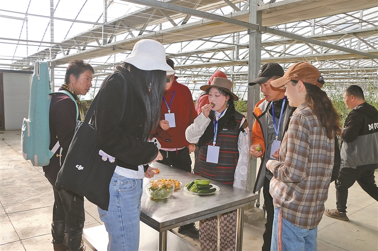 圖為網(wǎng)絡(luò)達人在瓊結(jié)縣菜籃子基地參觀拍攝。