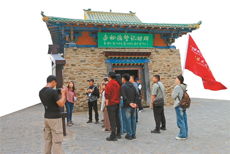 圖為網(wǎng)絡(luò)達人參觀拍攝瓊結(jié)縣赤松德贊記功碑。