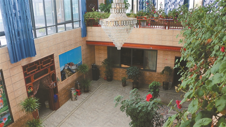 “現(xiàn)在的日子,以前想都不敢想。”剛組穿好睡衣從浴室出來(lái),倒上一杯酥油茶,愜意地靠在沙發(fā)上。陽(yáng)光穿過(guò)屋頂?shù)牟A旎ò?,在一樓墻壁投下斑駁的光影。望著二樓的房間,剛組回憶起了半個(gè)多世紀(jì)前。