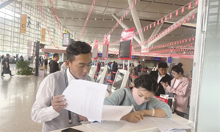 9月14日,萬女士按時(shí)抵達(dá)拉薩貢嘎國際機(jī)場(chǎng)祥鵬航空值機(jī)柜臺(tái)。地面服務(wù)工作人員認(rèn)真查看了《動(dòng)物檢疫合格證明》、寵物疫苗注射證明等材料,迅速為萬女士辦理了相關(guān)乘機(jī)手續(xù)。隨后,工作人員全程提供陪同服務(wù),先與機(jī)場(chǎng)安檢部門積極協(xié)調(diào),幫助萬女士和寵物高效通過安檢;接著引領(lǐng)萬女士登機(jī),并與航班客艙經(jīng)理做好詳細(xì)交接。