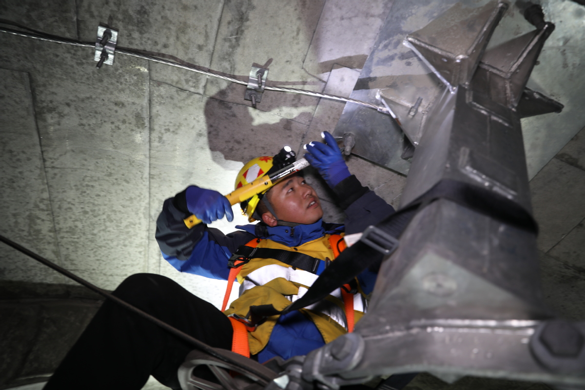與此同時,在海拔4000多米的火車隧道旁,另一場守護(hù)正在上演。變配電專修工區(qū)副工長登增次仁正帶領(lǐng)工友,背著沉甸甸的工具包,攀爬在陡峭的護(hù)坡上。寒風(fēng)如刀,他們的腳步卻無比堅實。