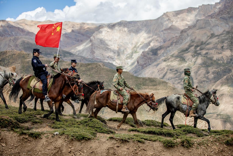 更艱險(xiǎn)的巡邊路,隱沒在海拔5000米的峭壁之上。民警、戰(zhàn)士與村民騎著馬,在絕壁間逶迤前行,落石與暗冰隨時(shí)可能出現(xiàn)。次仁多布杰輕撫馬鬃,聲音如雪山般沉穩(wěn):“我父親的父親的父親就在這里出生,這里必須有人守。我住,我的孩子也要住!若無人守邊,何人護(hù)國(guó)?”作為受人尊敬的村醫(yī),他本可退休進(jìn)城,安享優(yōu)渥。但他依然選擇守護(hù)這片土地。