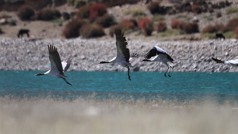 隨著天氣逐漸轉(zhuǎn)冷,素有“高原仙子”美稱(chēng)的黑頸鶴開(kāi)始南遷,前往西藏林周縣、墨竹工卡縣等地越冬。據(jù)悉,每年10月中下旬,黑頸鶴陸續(xù)飛抵雅魯藏布江中游河谷等地越冬。