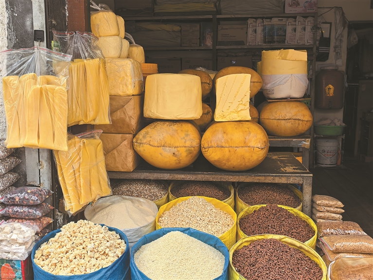 酥油,這種從新鮮牛奶中提煉而成的乳脂,不僅是藏族飲食文化的主角,更承載著高原民族的生存智慧,凝結(jié)著高原人民對(duì)大自然的敬畏與對(duì)生活的熱愛。不論是酥油茶,還是“推”(一種藏式點(diǎn)心),或是藏歷新年家家必備的酥油花,都是由酥油制成,由此可見酥油在藏族人民生活中不可或缺的核心地位。