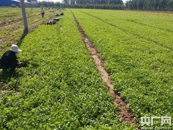 在河北省正定縣廂同村,有一片一望無際的香菜田。初夏時節(jié),正是這里最繁忙的時候。香菜已經(jīng)長出綠油油的苗芽,在金色的麥田旁顯得朝氣蓬勃。
