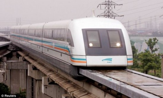 連接浦東機場和上海新金融區(qū)的國內(nèi)首列磁懸浮列車(圖片來源:央視網(wǎng))
