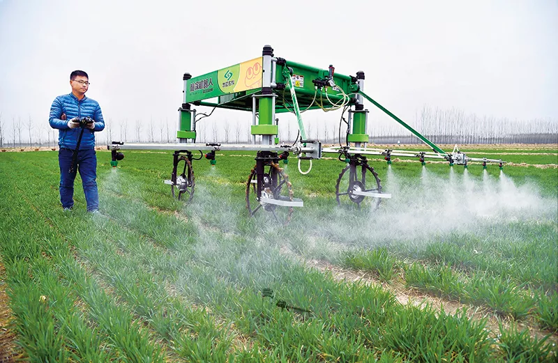 實施鄉(xiāng)村振興戰(zhàn)略,必須破除人才瓶頸制約。記者在山東壽光、滕州、鄒平等地看到,很多外出求學、打工、創(chuàng)業(yè)多年的年輕人,帶著新的理念和技術回到農(nóng)村,成為希望田野上的職業(yè)農(nóng)民。圖為2018年3月20日,鄒平縣明集鎮(zhèn)年輕的職業(yè)農(nóng)民在操作植保機器人噴施農(nóng)藥。 新華社記者 郭緒雷/攝