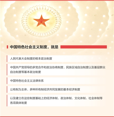 先進(jìn)科學(xué)的制度。制度能夠自我完善、自我革新,得益于制度設(shè)計的先進(jìn)性、科學(xué)性。中國制度堅持科學(xué)社會主義基本原則,具有鮮明中國特色,遵循中國社會發(fā)展規(guī)律、制度建設(shè)規(guī)律,是先進(jìn)的、科學(xué)的制度。作為一套相互銜接、相互聯(lián)系的制度體系,它為在堅持根本制度、基本制度前提下改革完善各項體制機(jī)制奠定了堅實基礎(chǔ),為發(fā)揮制度優(yōu)勢提供了有力保障。正如習(xí)近平同志所指出的,“中國特色社會主義制度,堅持把根本政治制度、基本政治制度同基本經(jīng)濟(jì)制度以及各方面體制機(jī)制等具體制度有機(jī)結(jié)合起來,堅持把國家層面民主制度同基層民主制度有機(jī)結(jié)合起來,堅持把黨的領(lǐng)導(dǎo)、人民當(dāng)家作主、依法治國有機(jī)結(jié)合起來,符合我國國情,集中體現(xiàn)了中國特色社會主義的特點和優(yōu)勢,是中國發(fā)展進(jìn)步的根本制度保障。”