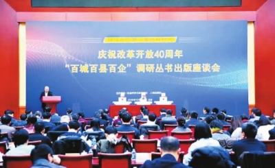 全國(guó)社科系統(tǒng)數(shù)千名專(zhuān)家學(xué)者深入100個(gè)縣區(qū)、100個(gè)城市和100個(gè)企業(yè)開(kāi)展慶祝改革開(kāi)放40周年大調(diào)研,取得豐碩成果。圖為成果座談會(huì)現(xiàn)場(chǎng)。中國(guó)社會(huì)科學(xué)院科研局供圖
