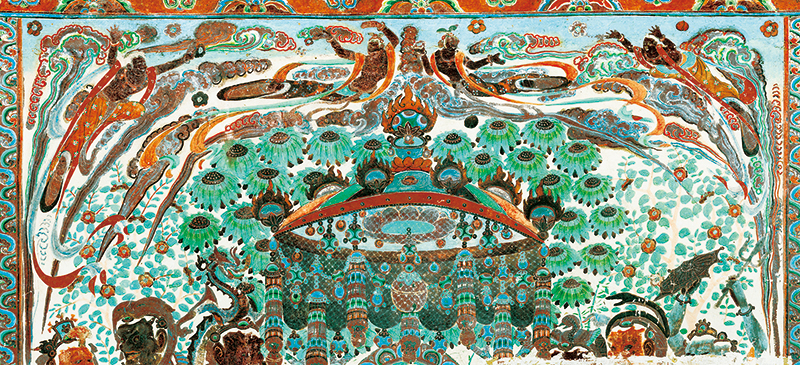 敦煌是古代中國認(rèn)識世界的前沿,也是當(dāng)時(shí)世界了解中國的窗口之一。在這里,來自印度、希臘、波斯等國家和中亞地區(qū)的文化,與中國文化平等對話,在交流融合中不斷創(chuàng)新、不斷進(jìn)步,使其成為中西文明交往的樣板。圖為敦煌莫高窟第320窟的壁畫。 敦煌研究院供圖