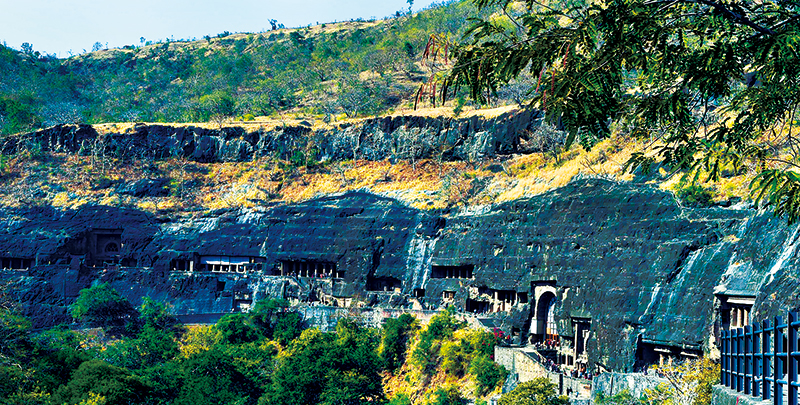 印度阿旃陀石窟鑿于一處馬蹄形暗色巖陡崖上,其形成年代主要分為兩個(gè)時(shí)期:公元前2世紀(jì)至公元前1世紀(jì)和公元5至6世紀(jì)。它集古代建筑、雕刻、繪畫之大成,融佛教信仰、文化變遷、社會生活于一體,既具有極高的藝術(shù)價(jià)值,又飽含深厚的歷史底蘊(yùn)。圖為在印度馬哈拉施特拉邦拍攝的阿旃陀石窟外景。 新華社記者 張迺杰/攝