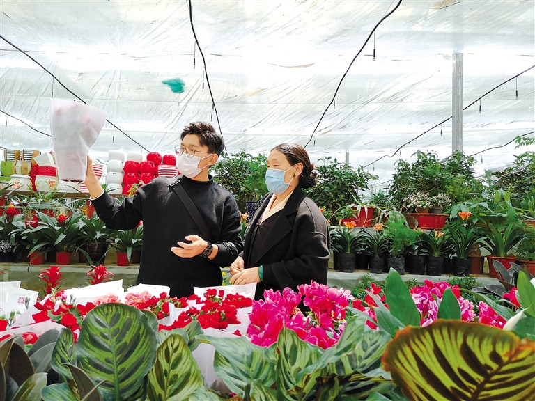 市民在拉薩智昭凈土產(chǎn)業(yè)園購(gòu)買(mǎi)鮮花。記者 周輝 攝