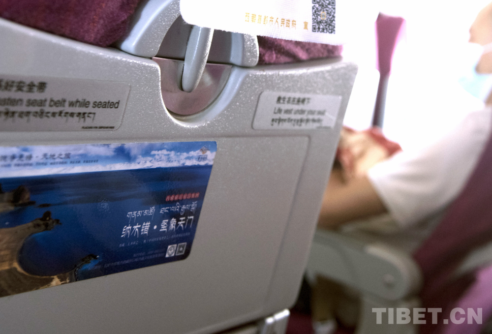 這是在西藏航空公司執(zhí)飛的客機艙座后所張貼的“圣象天門”招貼圖(唐召明2020年8月17日攝)