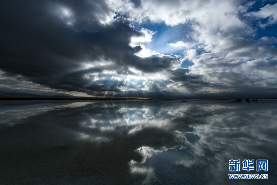 云彩漸漸退去,光芒開(kāi)始顯現(xiàn),茶卡鹽湖的美妙時(shí)刻就這樣開(kāi)始了。