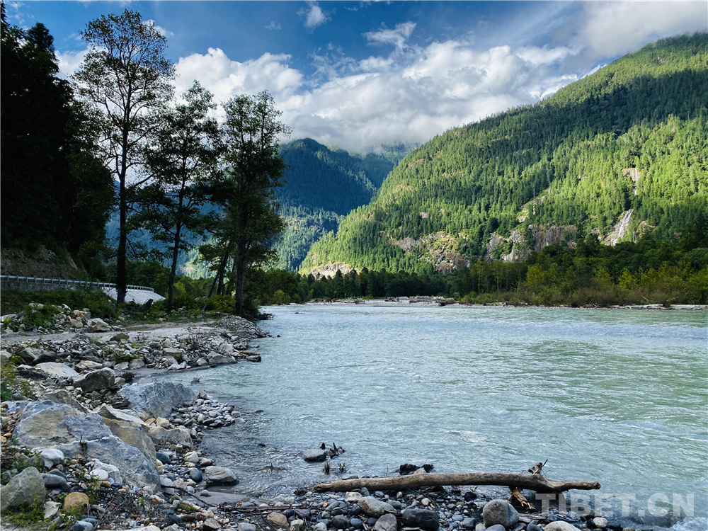 駕車行駛在新建的219國(guó)道察隅段,路沿著清澈的貢日嘎布曲河流一路延伸,公路兩旁茂密的樹(shù)木,仿佛行進(jìn)在天然氧吧里,每轉(zhuǎn)過(guò)一個(gè)彎,眼前的景色都會(huì)給你帶來(lái)驚喜。沿途群山有許多大大小小的瀑布,如大家熟知的畢達(dá)瀑布、布宗瀑布等等。旺堆師傅告訴我,十月后,群山穿上了白衣,樹(shù)木染成了秋黃,那個(gè)景色才叫極致。