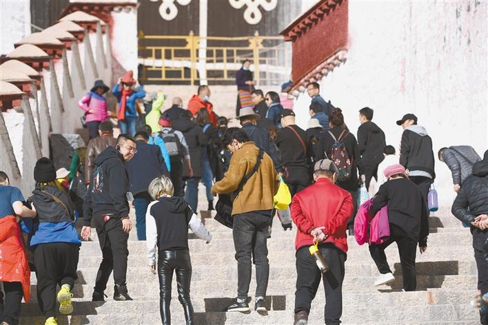 近年來,隨著“冬游西藏”活動(dòng)推出,游客實(shí)現(xiàn)了赴藏旅游成本降一半、旅游體驗(yàn)更完美的“夢想”。圖為11月8日,游客在布達(dá)拉宮參觀游玩。記者 李洲 攝