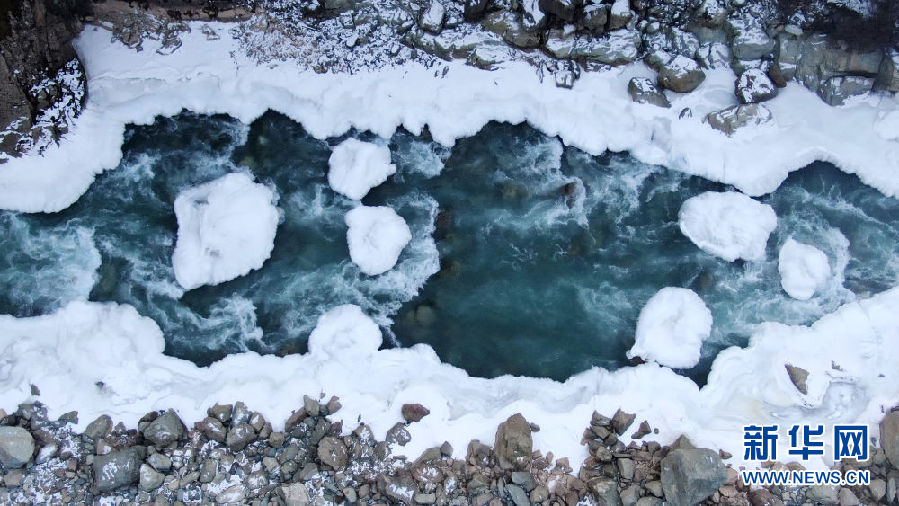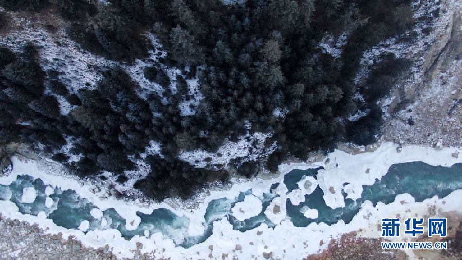 青海省祁連縣境內(nèi)的黑河峽谷風(fēng)光(12月10日攝,無人機(jī)照片)。新華社記者 張宏祥 攝
