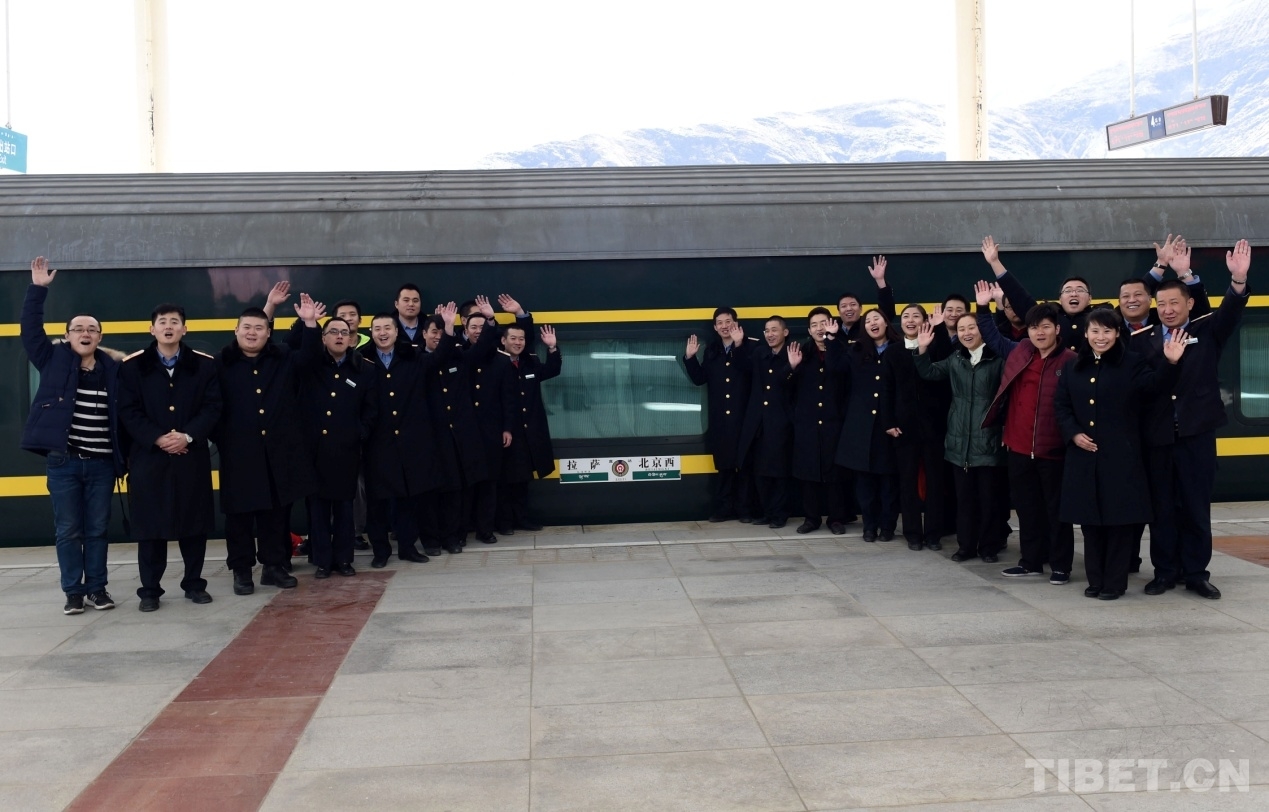 在拉薩火車站站臺上,我與乘務(wù)員們眼噙淚水,與無數(shù)次行駛在藏北高原的列車拍照留念。為優(yōu)化進(jìn)藏列車運(yùn)行線路,推進(jìn)東北地區(qū)等老工業(yè)基地的振興,從2016年2月1日至5日,京藏列車的5個車體由北京鐵路局移交沈陽鐵路局,整趟列車線路以后延伸至沈陽,北京改為經(jīng)停站。2017年,這趟列車又移交給了青藏鐵路公司負(fù)責(zé)運(yùn)行。