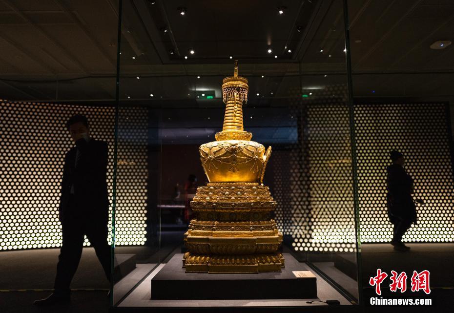 12月16日,“妙寶莊嚴(yán)——故宮博物院藏法器展”在北京嘉德藝術(shù)中心開(kāi)展。113件從北京故宮博物院藏宮廷法器中精選出的展品首次大規(guī)模出宮展出。圖為“乾隆款銅鍍金嵌松石佛塔”展品。中新社記者 侯宇 攝