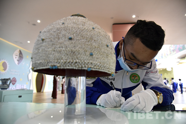 圖為7月8日,西藏博物館工作人員準(zhǔn)備就緒迎接對(duì)外開(kāi)放 攝影:王媛媛
